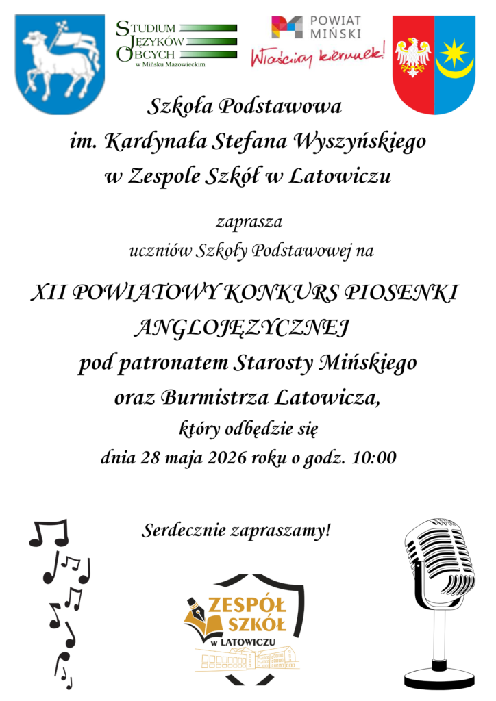 XII POWIATOWY KONKURS PIOSENKI ANGLOJĘZYCZNEJ REGULAMIN KONKURSU KARTA ZGŁOSZENIA UCZESTNIKA ZGODA NA PUBLIKACJĘ WIZERUNKU
