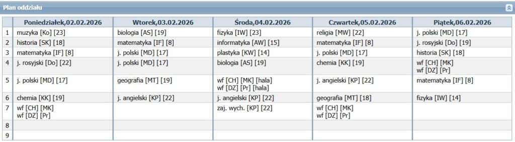 Plan lekcji 2025/2026 KLASA I A KLASA I B KLASA II A KLASA II B KLASA III KLASA IV A KLASA IV B KLASA V A KLASA V B KLASA VI KLASA VII A KLASA VII B KLASA VIII A KLASA VIII B