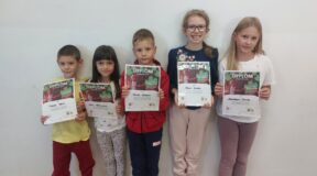 Naszą szkołę godnie reprezentowało czworo uczniów: Karol Dobrodziej z klasy II, Maciej Flis z klasy III b, Antonina Celej z klasy IV b oraz Filip Poświata z klasy IV a.