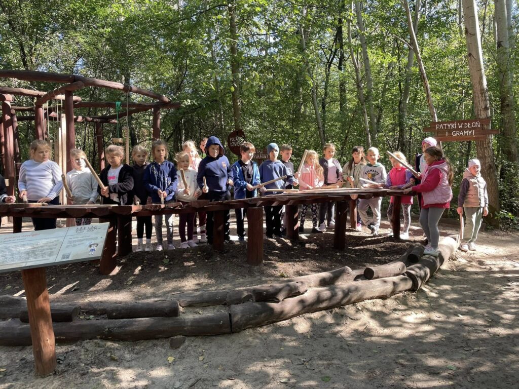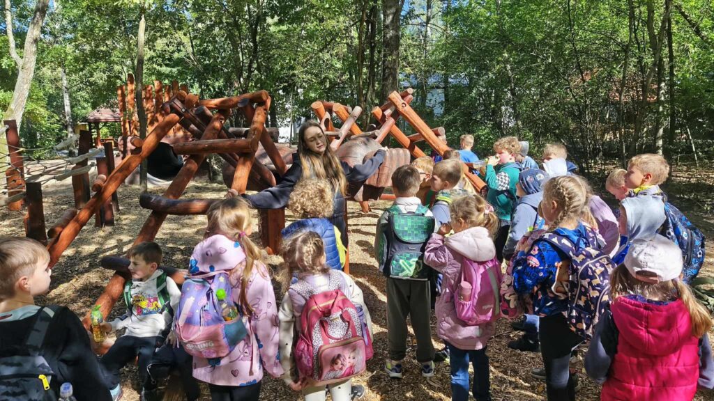 25 września uczniowie klas 1-3 wybrali się na wycieczkę do Lasu Odkrywców. Podczas pobytu dzieci brały udział w różnorodnych zajęciach terenowych, obserwowały kolory jesieni, a także słuchały odgłosów lasu. Dużą atrakcją były specjalnie przygotowane miejsca, w których uczniowie mogli ćwiczyć nie tylko równowagę, ale także zwinność, sprawność i odwagę podczas pokonywania leśnych przeszkód. Wyjście było okazją do praktycznej nauki, wspólnej zabawy i integracji. W otoczeniu przyrody dzieci odkrywały swoje możliwości, uczyły się współpracy i czerpały radość z aktywności na świeżym powietrzu.