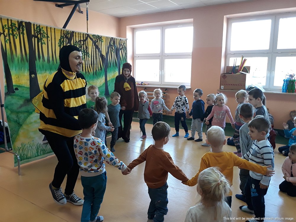 21 października przedszkolaki z naszego przedszkola obejrzały przedstawienie teatralne pt. „Na misiowych urodzinach-najważniejsza jest rodzina”. Dzieci z uwagą śledziły losy głównego bohatera, którego przyjęcie urodzinowe mogło się nie odbyć, mimo, że długo na nie czekał. Każdy z jego najbliższych miał własne plany na ten dzień i wydawało mu się, że nie ma nic ważniejszego. Aż do chwili, gdy mądra biedronka uświadomiła wszystkim, że ważniejsza jest obecność na przyjęciu, niż dostarczenie prezentu.